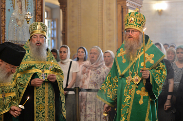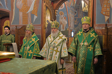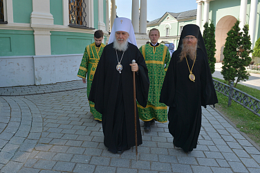 В храме в честь Введения во храм Пресвятой Богородицы Его Высокопреосвященству сослужили наместник Оптиной пустыни епископ Можайский Иосиф, епископ Козельский и Людиновский Макарий, братия обители в священном сане, представители духовенства Калужской и Козельской епархий.