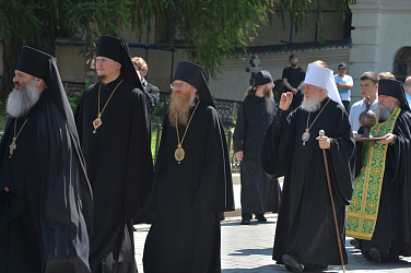 Затем митрополит Климент обратился со словами приветствия к наместнику монастыря епископу Иосифу, братии и многочисленным паломникам.