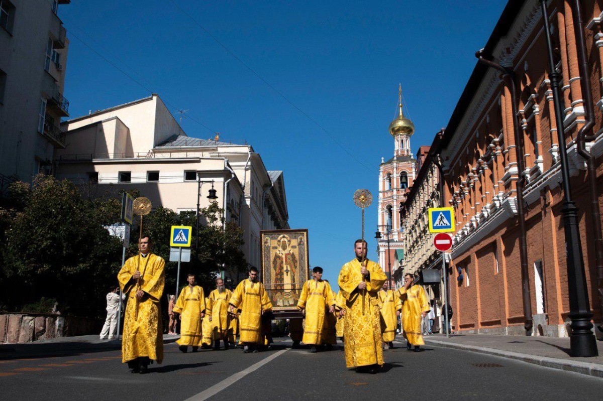 По окончании Божественной литургии был совершен большой крестный ход. Братия, приглашенные гости, прихожане и паломники во главе с иерархом совершили торжественное хождение вокруг того исторического квартала, где издревле располагалась обитель (ул. Петровка, Крапивенский переулок, Петровский бульвар).