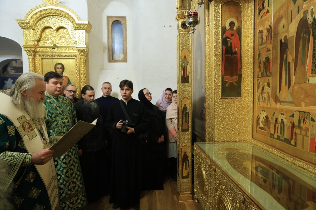 По окончании Литургии было совершено славление преподобному Никону Радонежскому перед ракой с его честными мощами, которая находится в Никоновском приделе Троицкого собора.