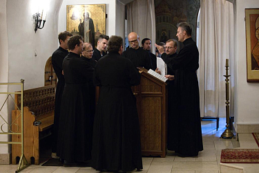 Утром в Покровском храме Даниловской обители наместник монастыря епископ Солнечногорский Алексий отслужил Божественную литургию и совершил славление у раки преподобного Георгия. На богослужении пел хор монастыря. Затем владыка Алексий посетил недавно открытую мемориальную келью преподобного.