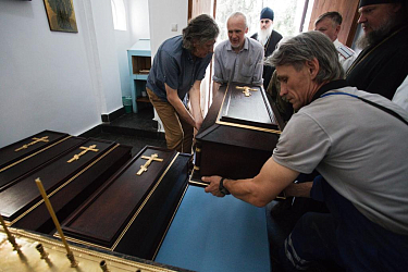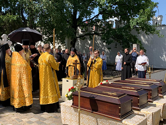 В Новокосине, в храме Собора новомучеников и исповедников Российских в полдень была совершена заупокойная лития по почившим инокам Спасо-Преображенского кремлевского монастыря, которую отслужил настоятель протоиерей Владимир Клюев и духовенство Патриаршего подворья. Затем святыня была доставлена в Данилов монастырь. После литии, в присутствии священноначалия, насельников монастыря и прихожан три ковчега были перенесены в поминальную часовню, где они будут находиться до августа, а затем в рамках мероприятий, посвященных 40-летию возрождения Данилова монастыря, состоится их перезахоронение в так называемой монастырской костнице.