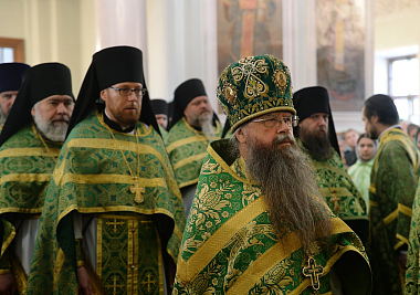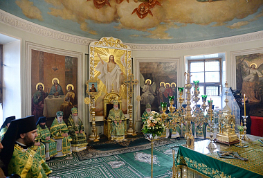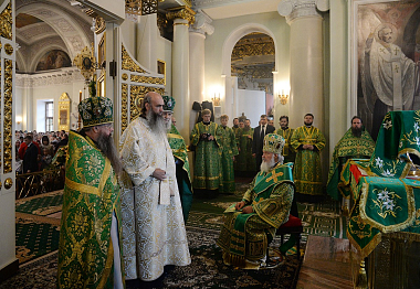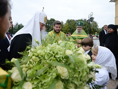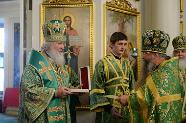 Затем Святейший Владыка огласил указ, согласно которому в главном храме Данилова ставропигиального мужского монастыря – соборе Живоначальной Троицы – благословляется совершение Божественной литургии с отверстыми Царскими вратами по «Отче наш...».