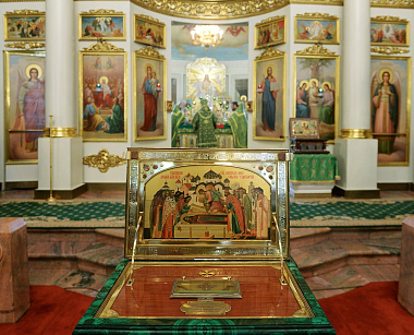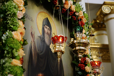 По окончании Литургии Святейший Владыка совершил славление и прочитал молитву перед ковчегом с частицей мощей святого благоверного князя Даниила Московского.