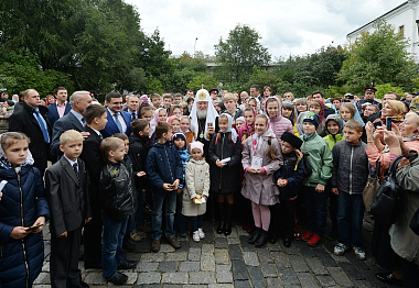 На площади перед Троицким собором состоялась встреча Предстоятеля Русской Церкви с детьми воинов, погибших в локальных конфликтах. Святейший Патриарх Кирилл побеседовал с детьми, благословил их и вручил подарки. Встреча была организована благотворительным фондом «Защитник счастья», ассоциацией ветеранов спецподразделения «Альфа» и Молодежным отделом Московской городской епархии.