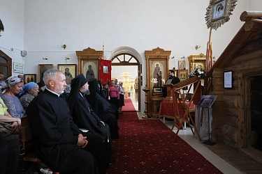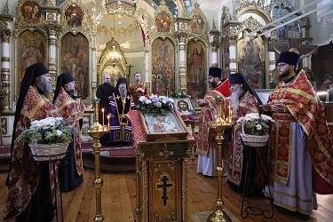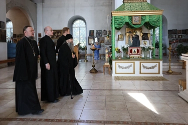 Благочинный церквей Кашинского округа протоиерей Александр Рычков от лица духовенства и прихожан собора преподнес в подарок наместнику Данилова монастыря икону благоверной княгини-инокини Анны Кашинской.