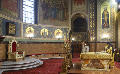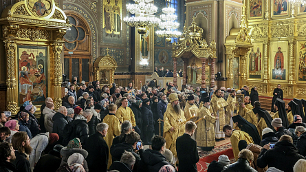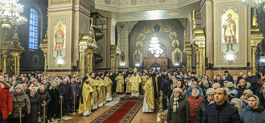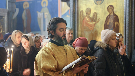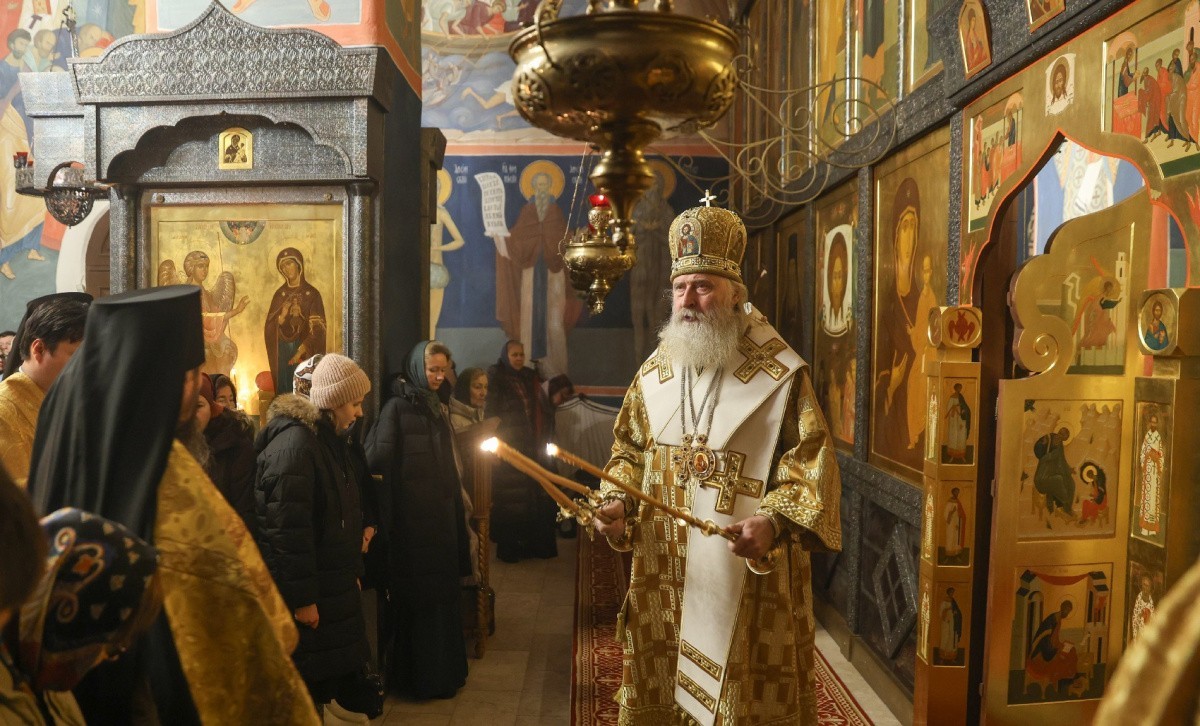 По благословению Святейшего Патриарха Кирилла позднюю Божественную литургию в Спасо-Преображенском соборе при большом стечении прихожан, паломников и гостей Николо-Угрешского монастыря возглавил епископ Сергиево-Посадский и Дмитровский Кирилл (Зинковский), наместник Троице-Сергиевой лавры, ректор Московской духовной академии.