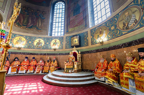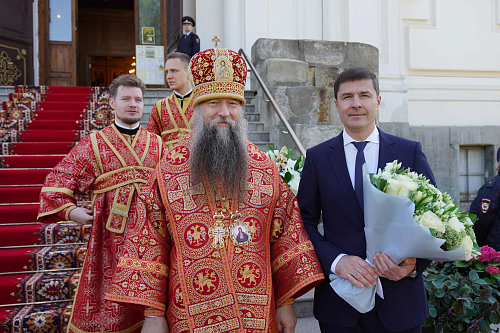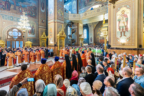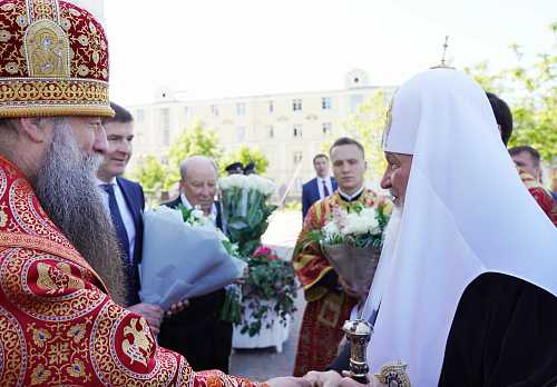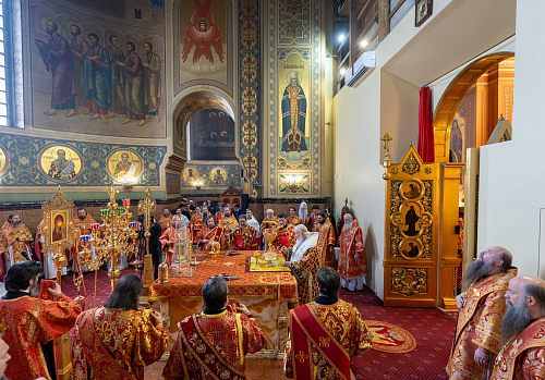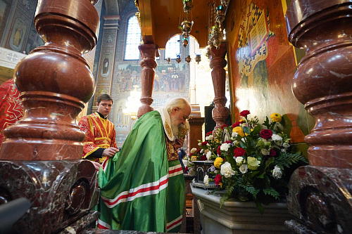 По прибытии в собор Святейший Владыка поклонился мощам святителя Николая Чудотворца и преподобного Пимена Угрешского.