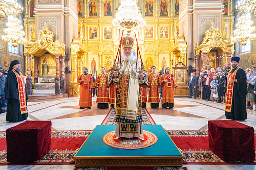 На сугубой ектении были вознесены особые прошения. Предстоятель Русской Православной Церкви прочитал молитву о Святой Руси.
