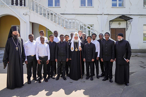 Далее состоялась краткая беседа Его Святейшества со студентами Николо-Угрешской духовной семинарии, прибывшими на обучение из стран Африки.