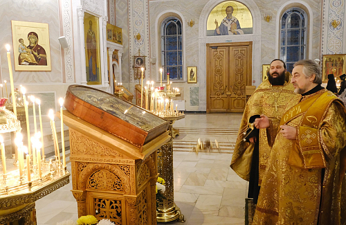 Накануне состоялось всенощное бдение с акафистом святителю Николаю.