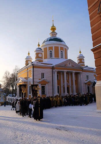 В день праздника были совершены две Божественные литургии: ранняя в Покровском соборе и поздняя в Никольском соборе монастыря.