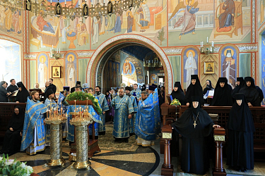 Богослужебные песнопения исполнил сестринский хор монастыря и мужской хор храма Живоначальной Троицы в Останкине города Москвы.