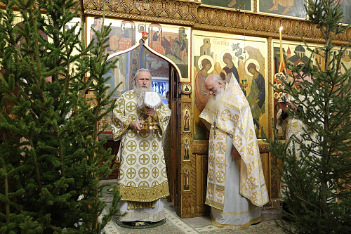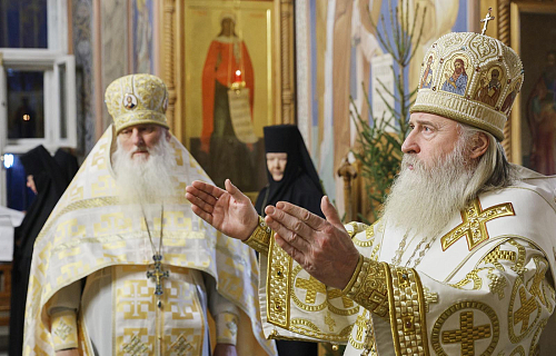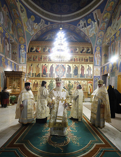 Его Высокопреосвященству сослужило монастырское духовенство.