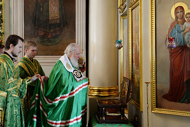 12 сентября 2017 года, в праздник обретения мощей святого благоверного князя Даниила Московского (1652) и перенесения мощей святого благоверного великого князя Александра Невского (1724), Святейший Патриарх Московский и всея Руси Кирилл совершил Божественную литургию в Троицком соборе Данилова ставропигиального мужского монастыря города Москвы.