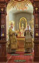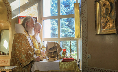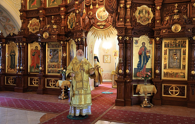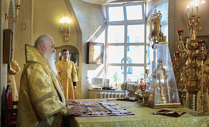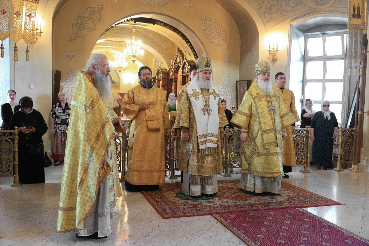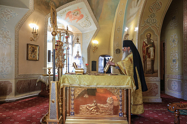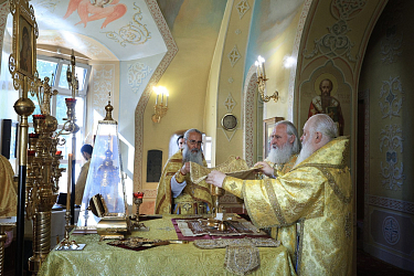 Его Высокопреосвященству сослужили наместник Екатерининского монастыря епископ Видновский Тихон, братия обители в священном сане.