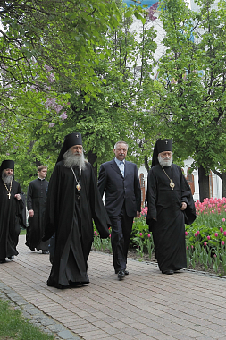 · С.А. Пахомов, глава Сергиево-Посадского муниципального района; гости и благотворители обители Преподобного Сергия.