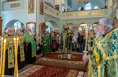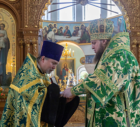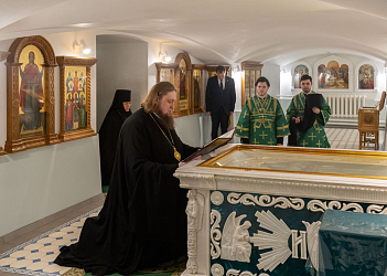 По прибытии в монастырь епископ Силуан спустился в храм-усыпальницу, где поклонился мощам праведного Иоанна Кронштадтского и вознес молитву святому.