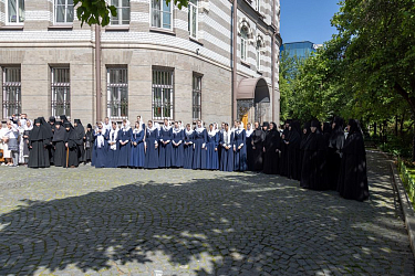 Богослужебные песнопения исполняли сестры Иоанновского монастыря и студенты факультета церковных искусств Санкт-Петербургской духовной академии в женском хоре под руководством А.В. Куликовой.