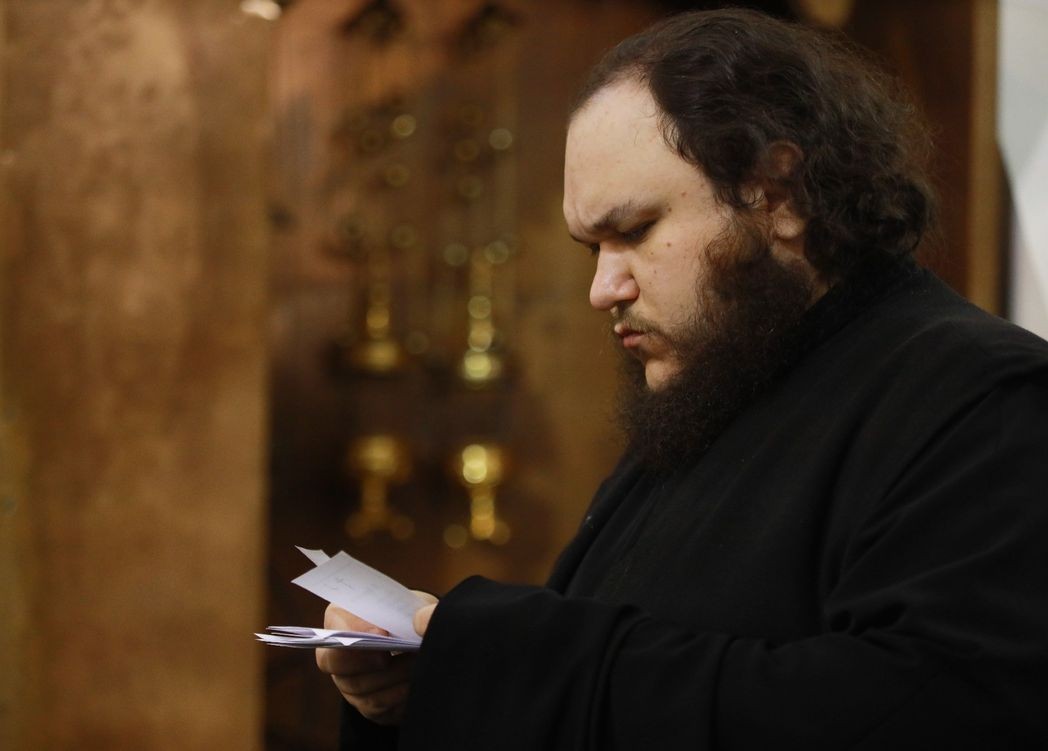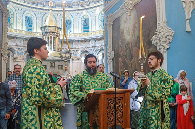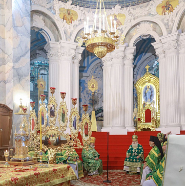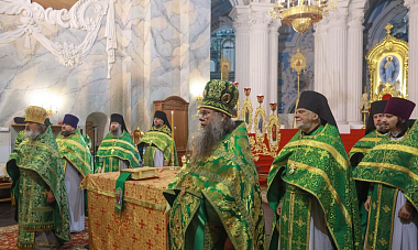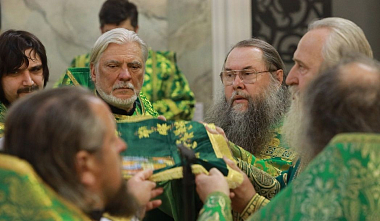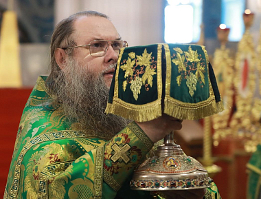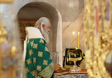 Его Высокопреосвященству сослужили наместник Ново-Иерусалимской обители архимандрит Феофилакт (Безукладников), братия монастыря в священном сане.