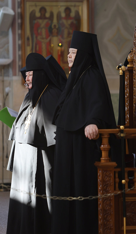 За богослужением молились настоятельница Хотькова монастыря игумения Олимпиада (Баранова) с сестрами и воспитанницами, настоятельница Борисоглебского Аносина ставропигиального женского монастыря игумения Мария (Солодовникова) с сестрами, прихожане и гости обители.