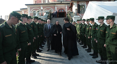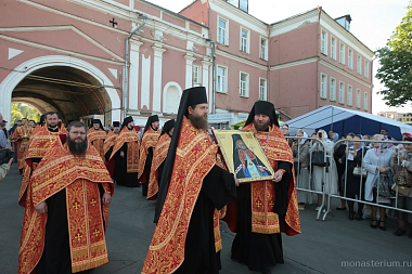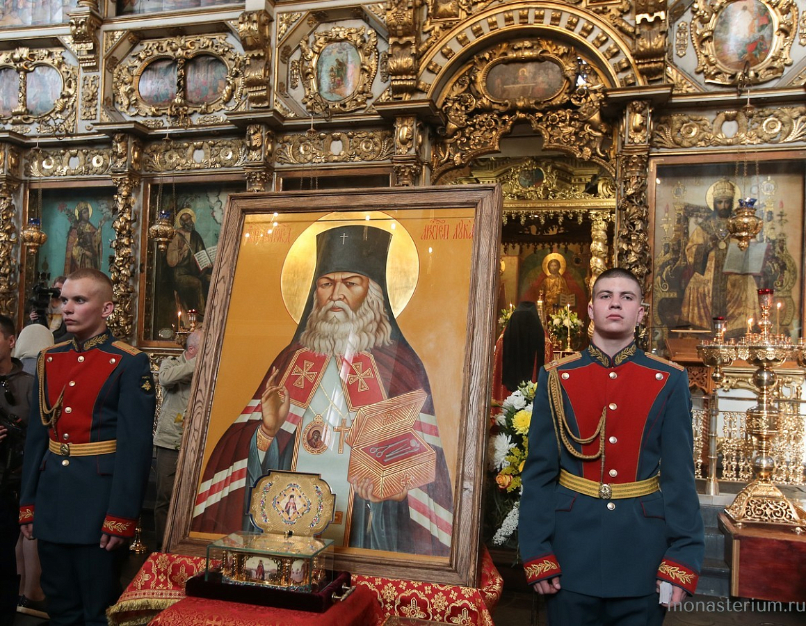 В этот день в Донском ставропигиальном мужском монастыре в 17.00 состоялась торжественная встреча святыни. У Святых врат обители ковчег с частицей мощей святителя Луки Крымского и чтимую икону святого встретили наместник монастыря епископ Бронницкий Парамон с братией.