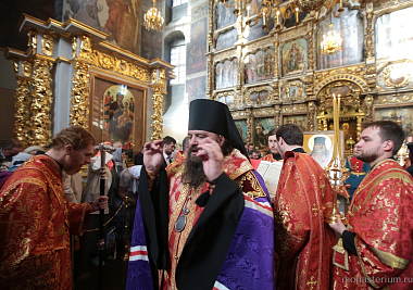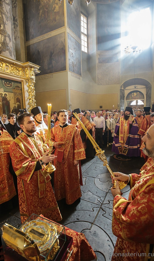 Святые мощи были перенесены в Большой собор Донского монастыря, где перед ними был отслужен молебен с чтением Евангелия.