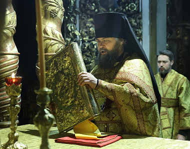 Его Высокопреосвященству сослужили наместник Андреевского ставропигиального мужского монастыря игумен Дионисий (Шленов), наместник Курской Коренной Рождества Пресвятой Богородицы мужской пустыни игумен Серафим (Котельников), монашествующие в священном сане.