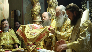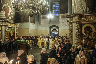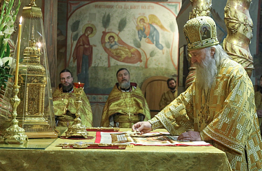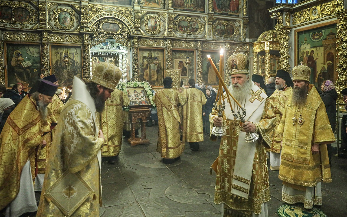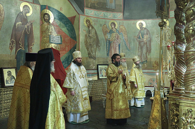 Его Высокопреосвященству сослужили: епископ Сергиево-Посадский и Дмитровский Фома, наместник Свято-Троицкой Сергиевой лавры, епископ Павлово-Посадский Силуан, братия Донского монастыря в священном сане.