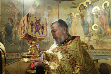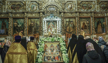 По окончании Литургии было совершено славление перед мощами святителя Тихона, Патриарха Московского и всея России.