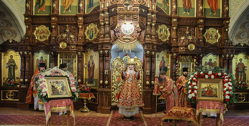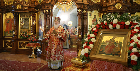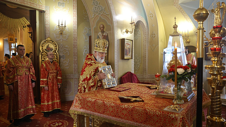 По окончании Божественной литургии владыка Тихон совершил славление перед ковчегом с частицей мощей святой великомученицы Екатерины. Священнослужители, насельники монастыря, прихожане и паломники вознесли общую молитву празднуемой святой.