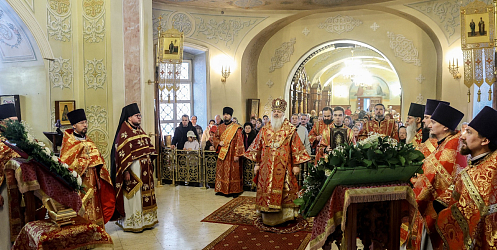 Праздничное богослужение в Екатерининском соборе возглавил наместник монастыря епископ Видновский Тихон, викарий Святейшего Патриарха Московского и всея Руси. Его Преосвященству сослужили протоиерей Павел Недосекин, секретарь Брюссельско-Бельгийской епархии Русской Православной Церкви Московского Патриархата; иеромонах Софроний (Горохольский), благочинный церквей Видновского округа, настоятель Успенского храма г. Видное; братия обители и духовенство Московской митрополии в священном сане.