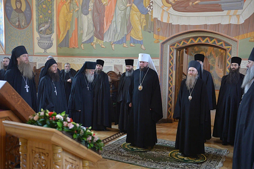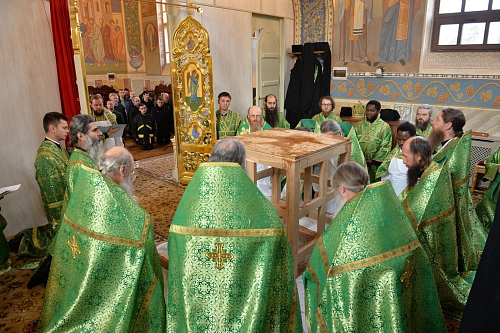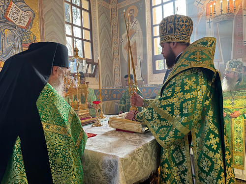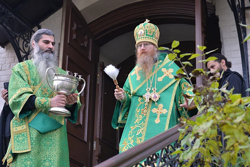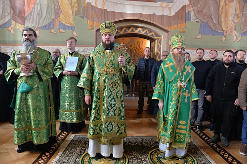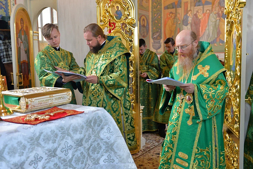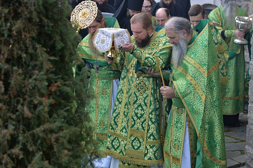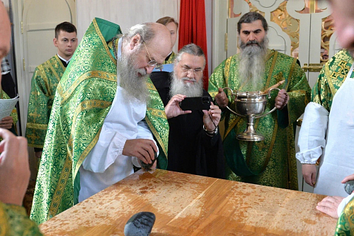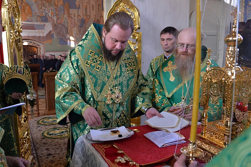 Чин великого освящения совершили совершили председатель Финансово-хозяйственного управления Московского Патриархата митрополит Наро-Фоминский Никандр и наместник Оптиной пустыни епископ Можайский Иосиф в сослужении монастырского духовенства.