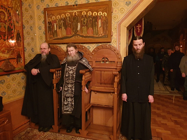 Богослужение возглавил наместник монастыря Оптина пустынь епископ Можайский Леонид в сослужении братии в священном сане.