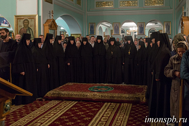 В сам праздничный день епископ Мстислав возглавил в обители позднюю Литургию в сослужении духовенства монастыря, Санкт-Петербургской митрополии и других епархий.