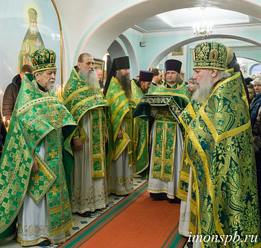 Накануне вечером было отслужено всенощное бдение с акафистом святому праведному Иоанну Кронштадтскому. Его Преосвященству сослужили клирики обители и храмов Санкт-Петербургской митрополии, а также священнослужители из других епархий.
