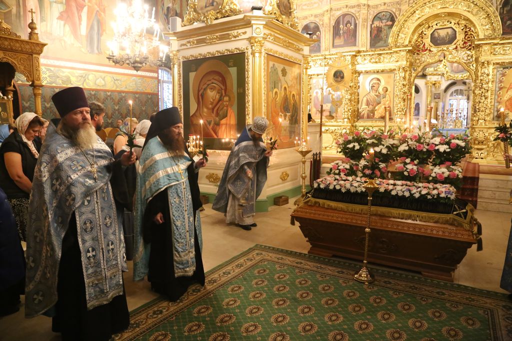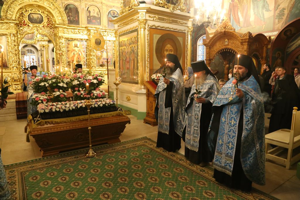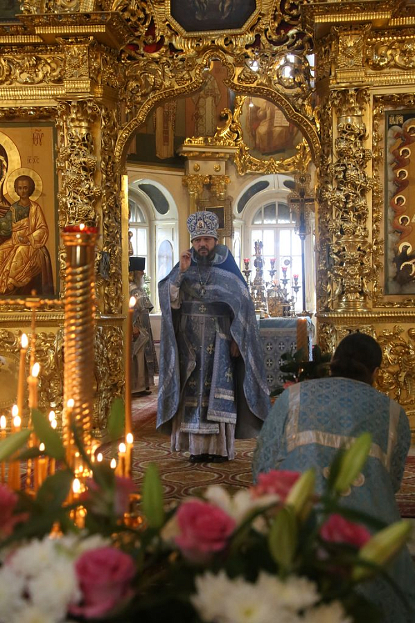 Накануне в Успенском соборе обители наместник монастыря архимандрит Сергий (Воронков) в сослужении братии в священном сане отслужил всенощное бдение.