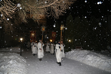 Накануне, в Крещенский сочельник, на Иосифовом пруду по традиции была устроена купель. После вечернего богослужения крестный ход из храма направился к пруду, где состоялось великое освящение воды. Были созданы условия для паломников, пожелавших окунуться в крещенскую купель.