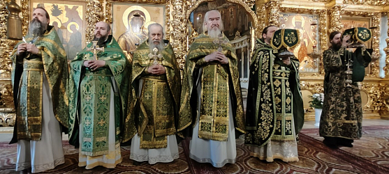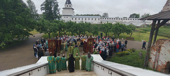 Утром 14 июня в Успенском соборе наместник монастыря архимандрит Сергий в сослужении братии совершил праздничную Литургию, после которой состоялся крестный ход вокруг собора.