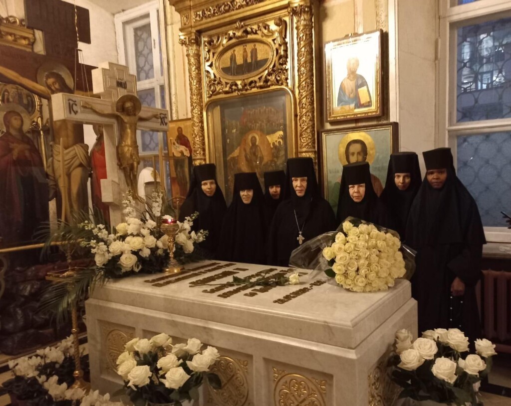 Матушка и сестры обители ежегодно в этот день приезжают в Богоявленский собор, молятся у его святынь – мощей почитаемого в монастыре святителя Алексия – наставника и воспитателя святого благоверного князя Димитрия Донского и князя Владимира Андреевича Храброго, чтимой Казанской иконы Божией Матери, образа святителя Николая Чудотворца и других. Также матушка игумения и сестры молятся у надгробий почивших Святейших Патриархов Сергия и Алексия II.