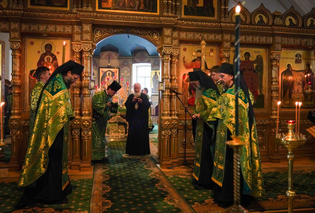 Вечером 10 июля 2025 года, в канун дня памяти преподобных Сергия и Германа Валаамских, чудотворцев (ок. 1353), Святейший Патриарх Московский и всея Руси Кирилл совершил всенощное бдение в нижнем храме Спасо-Преображенского собора Спасо-Преображенского Валаамского ставропигиального мужского монастыря.