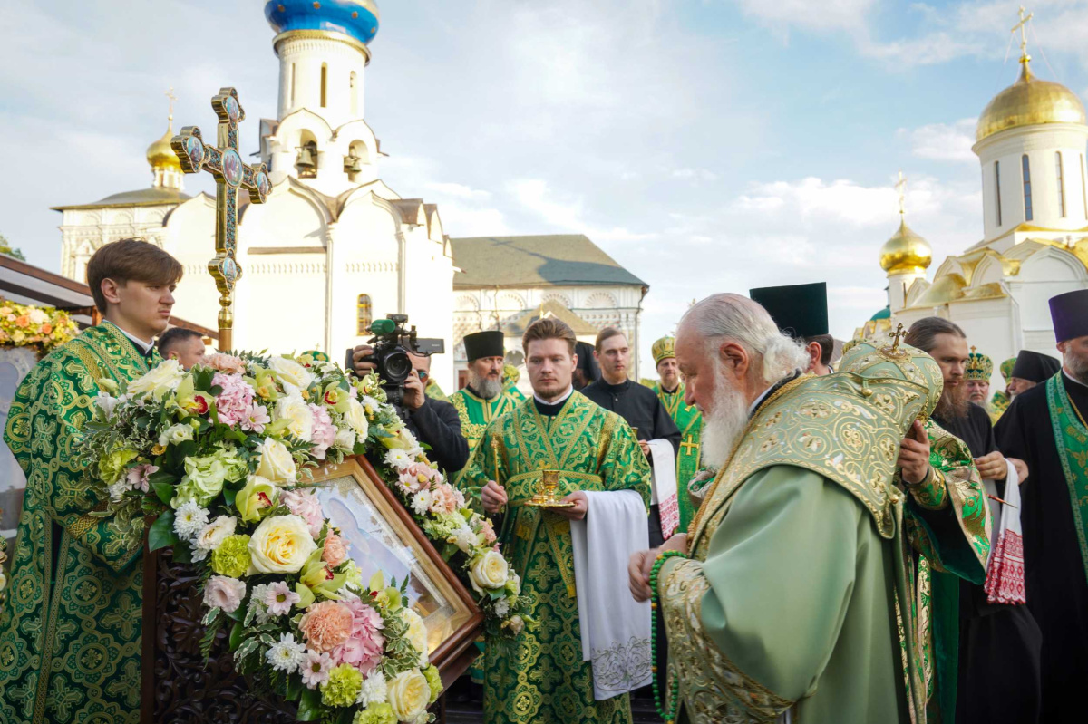Торжественное богослужение совершалось перед чтимой иконой преподобного Сергия. Для совершения праздничных всенощного бдения и Божественной литургии на Соборной площади устроен помост, а перед Успенским собором Лавры установлен престол под сенью.