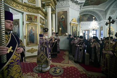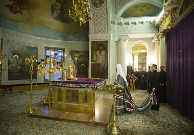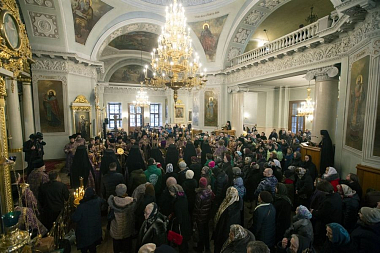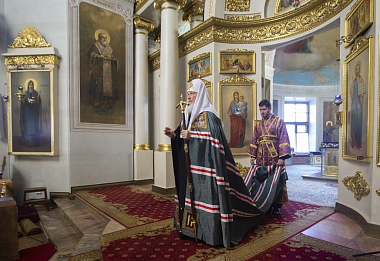 Вечером 15 марта 2019 года, в канун субботы первой седмицы Великого поста, дня памяти вмч. Феодора Тирона, праздника иконы Божией Матери, именуемой «Державная», Святейший Патриарх Московский и всея Руси Кирилл совершил полиелейную утреню в Троицком соборе Данилова ставропигиального мужского монастыря Москвы.