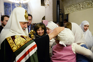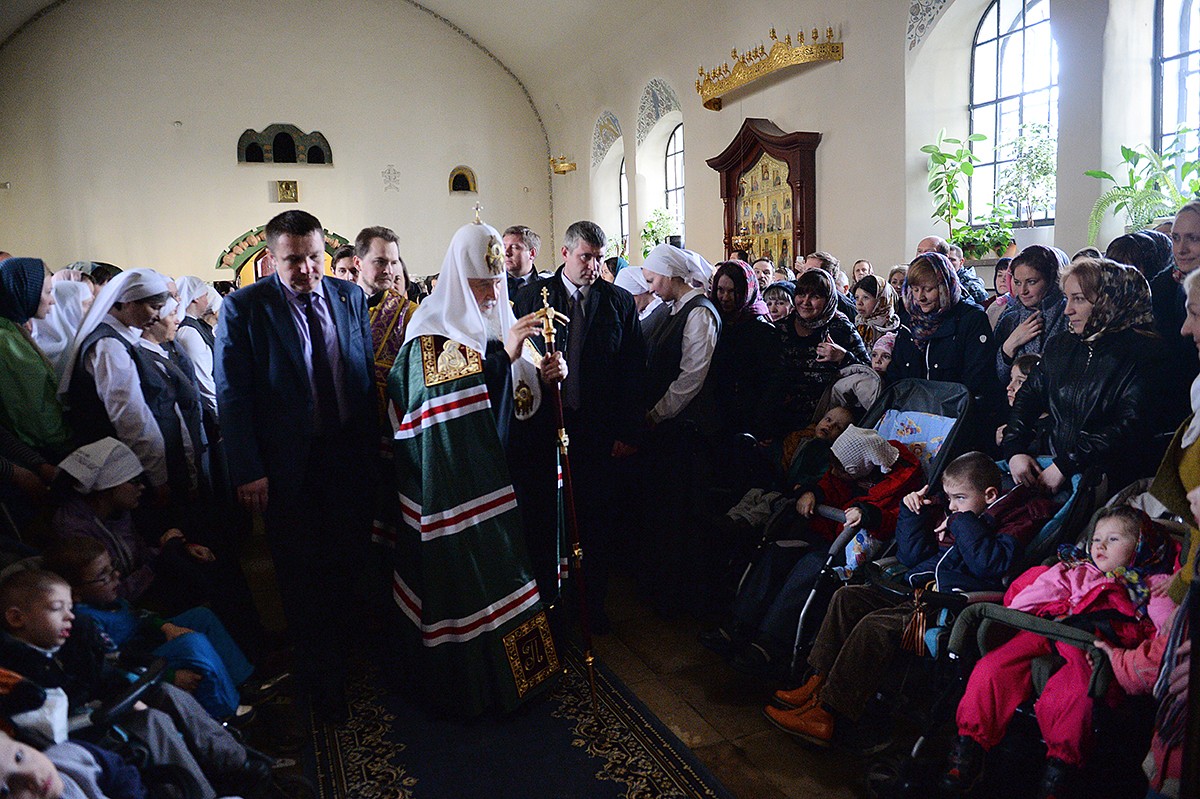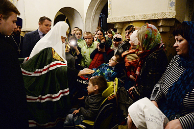 Святейший Владыка благословил детей, проходящих лечение в Марфо-Мариинской обители, и их родителей.