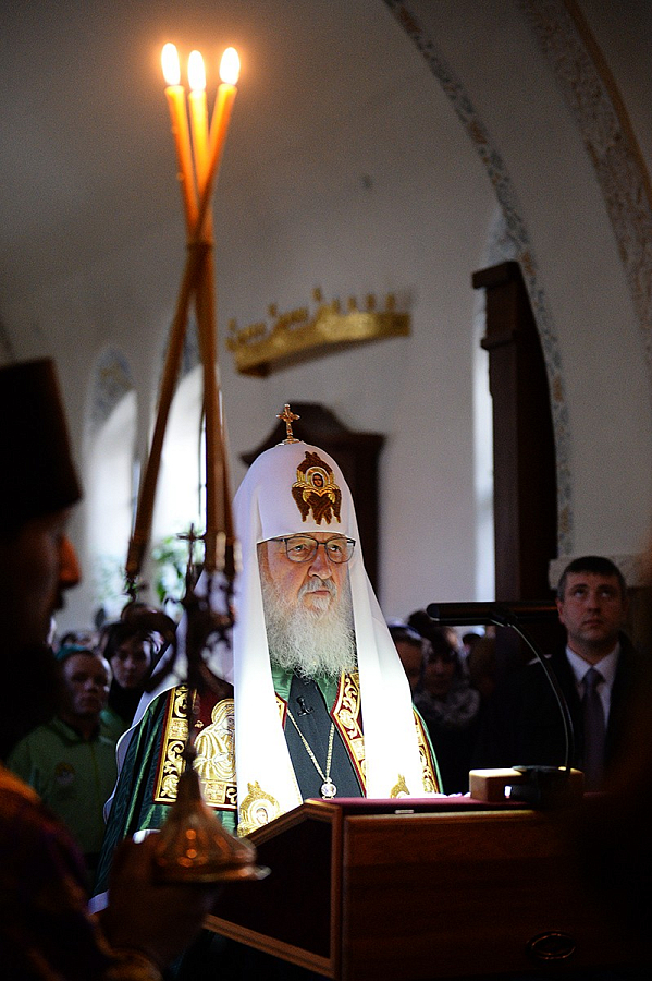 Предстоятель Русской Православной Церкви принял участие в вечернем богослужении в храме Покрова Пресвятой Богородицы.