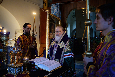 На малом повечерии Святейший Владыка читал трипеснец Триоди, на утрене Великого четверга – Евангелие.