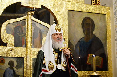 Предстоятель Русской Православной Церкви обратился к собравшимся с проповедью.