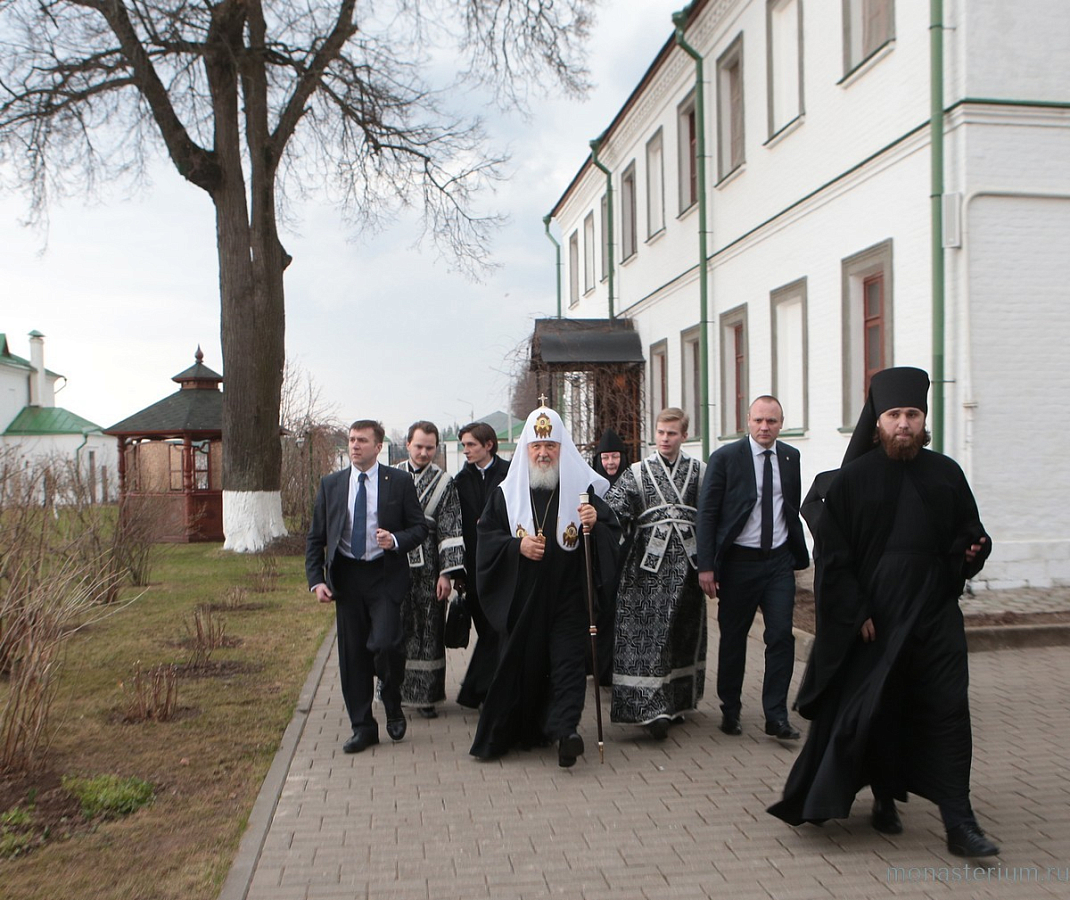Вечером 11 апреля 2017 года, в канун Великой Среды Страстной седмицы, Святейший Патриарх Московский и всея Руси Кирилл посетил Борисоглебский Аносин ставропигиальный женский монастырь в Истринском районе Московской области.