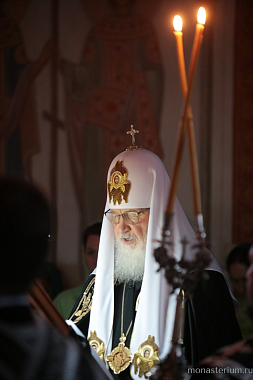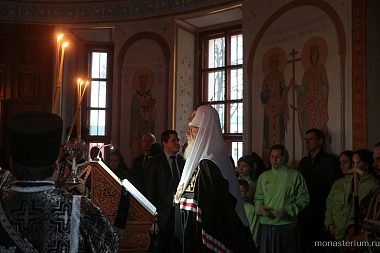 В Троицком соборе обители Предстоятель Русской Православной Церкви принял участие в вечернем богослужении в канун Великой Среды. На великом повечерии Святейший Патриарх Кирилл читал канон Триоди, а на утрене – Евангелие.