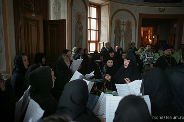 Богослужебные песнопения исполнил хор сестер Борисоглебского Аносина монастыря под управлением инокини Нонны (Пушкиной).